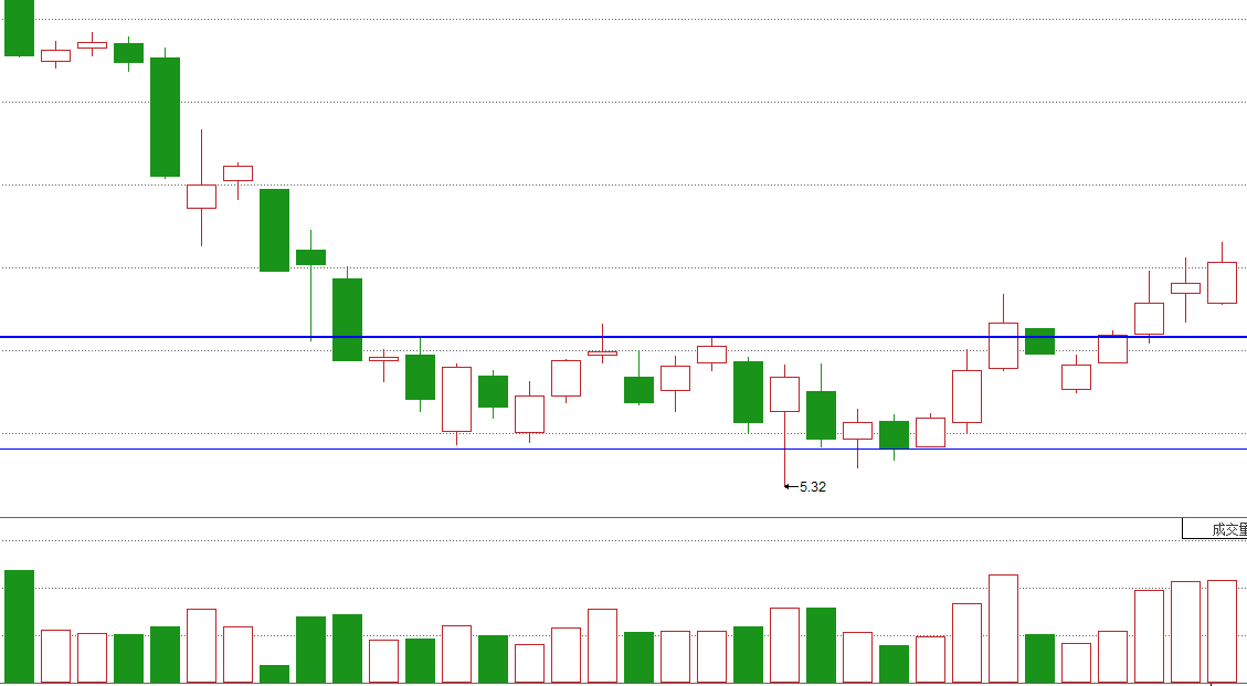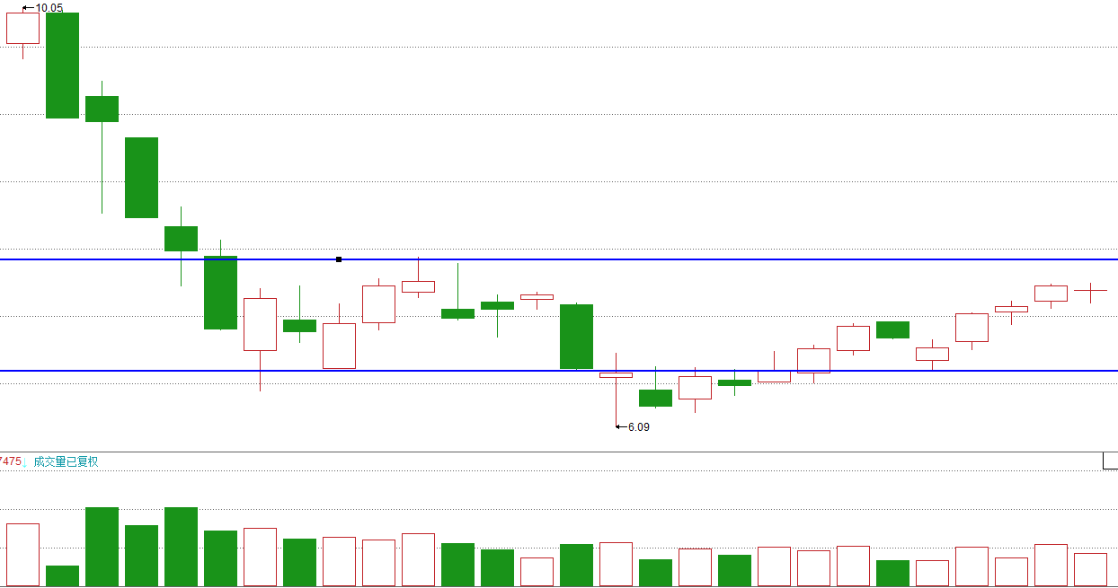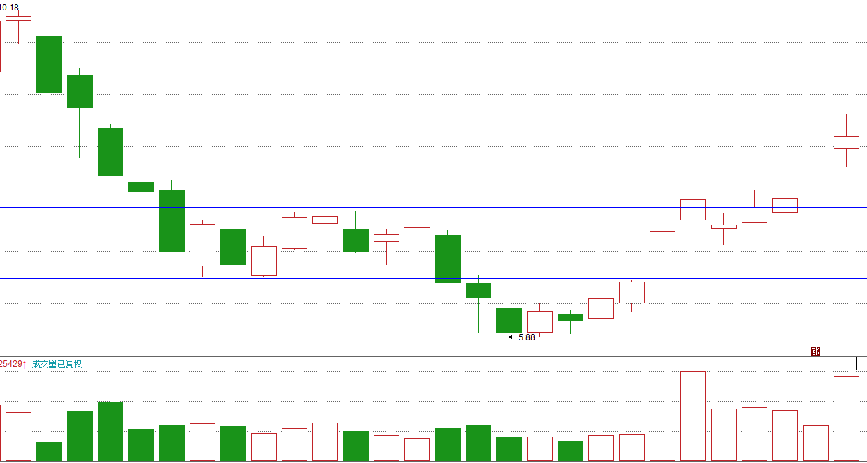 该股表现极其强势,首先是以一字涨停的方式破底翻,接着在底部上沿附近做强势整理,之后又以一字涨停的方式摆脱底部区间,可继续持股待涨。