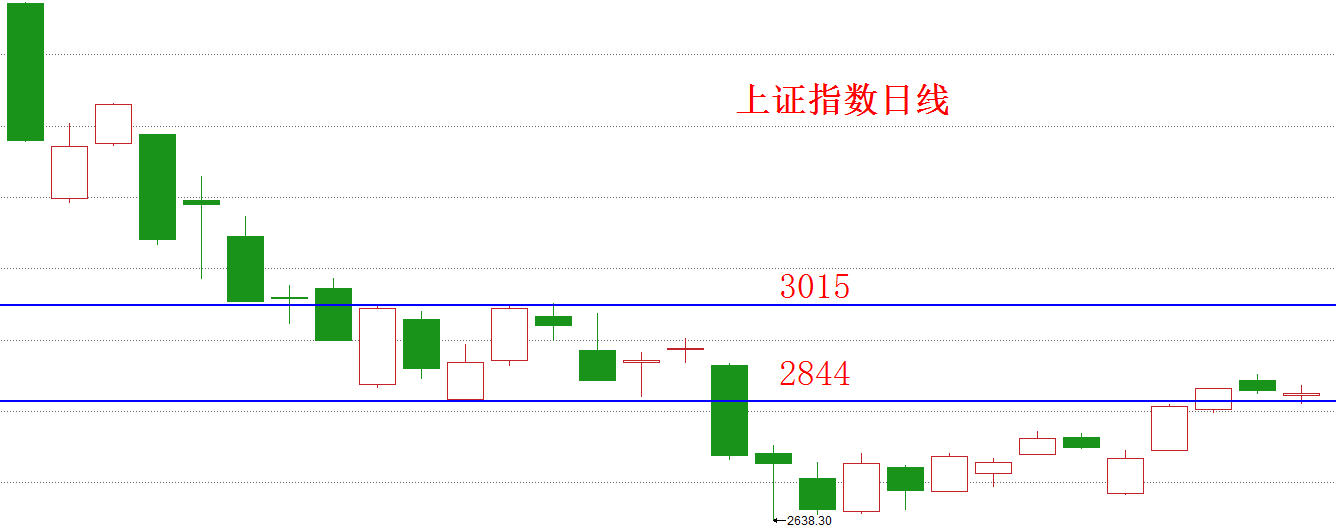 可以发现,如果我们以2844-3015点之间的箱体作为底部的话,上证指数已经翻回了底部下边沿。