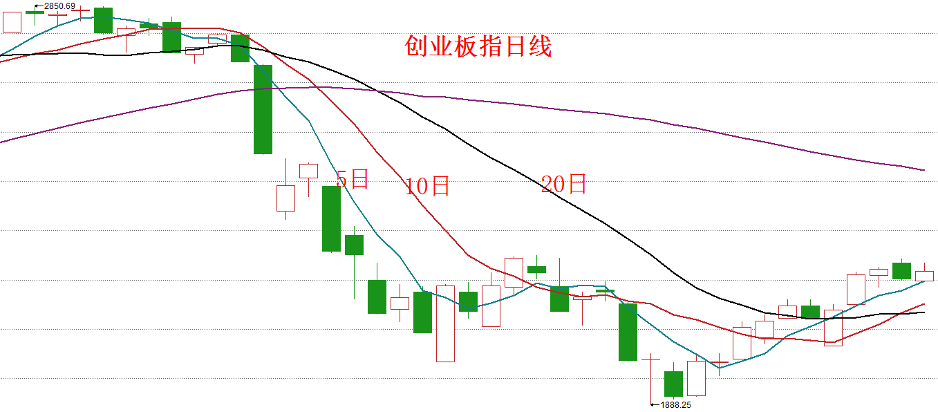 周五创业板指最低下跌8点,为2182.96点,刚好就在五日均线的位置。收盘时上涨20点,收报2211点,完全符合我们此前的预测。现在五日均线位置在2187点,明日将上移至2206点。现在十日均线位置在2131点,明日将上移至2151点。从均线系统角度而言,向下空间同样极为有限。只是要想向上突破2250点的压力区,可能还需要时间以及成交量的支持。