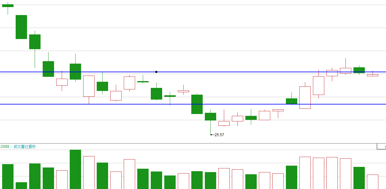 该股在发力冲击底部上沿后缩量回调,但回调幅度不深,基本在上沿附近。破底翻买入的仓位可继续持股,突破上沿时加仓买入者亦可继续持股,以待其再次发力上攻。