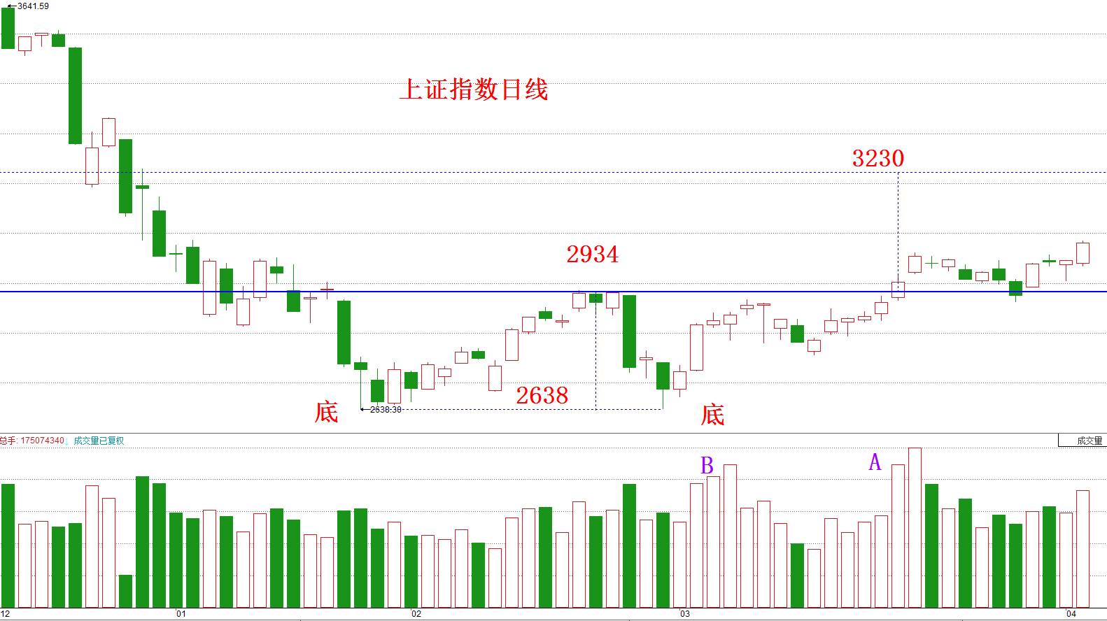 先说主板。在昨天的股市前瞻中,姚尧提到:“ 从中线角度而言,只要2934点不被有效跌破,我们依然可以将涨幅目标位设在3230点。然而周五又是拉尾盘,且日线上的成交量亦未能放大,短线上必须要有一根放量阳线来表明气势。”今天,上证指数算是收出了一根放量阳线,如下图所示:
