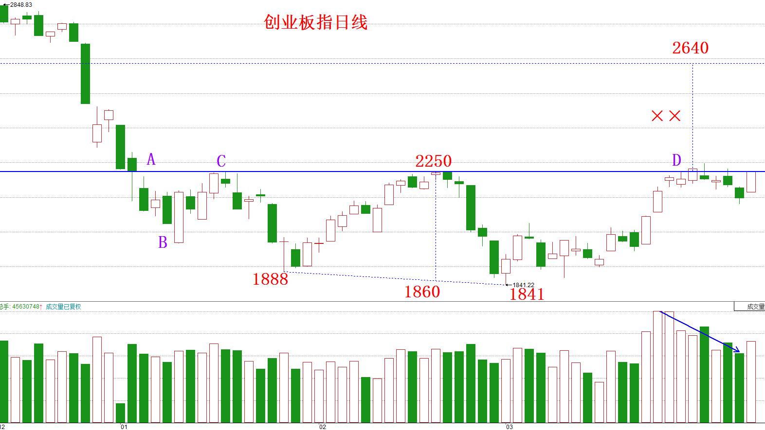 现在创业板指再次来到2250点一线,就看明天的表现了。如果接下来证明是有效突破,则创业板指的涨幅目标位仍然定在2640点。否则的话,盘整期又要被再度延长。当然,长线还是继续看好。