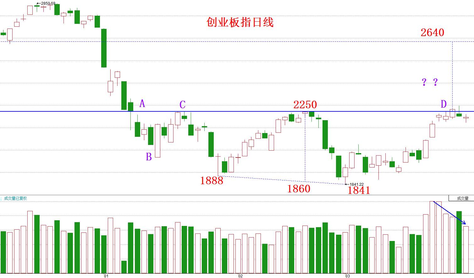 继周四冲高回落跌至2250点的颈线位以下后,周五创业板指全天都在2250点以下运行,这再次印证了我们这几日关于“周三的上涨并非有效突破”的推断。虽然我们反复强调中长线看好创业板,但短线上还没有发现任何转强的迹象。