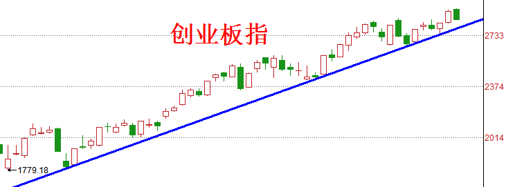 第四,自9月15日以来,创业板指一直在如下图所示的上升趋势线之上运行,在该趋势线被有效跌破之前,我们不预设立场,不去妄猜上升趋势是否已经终结。