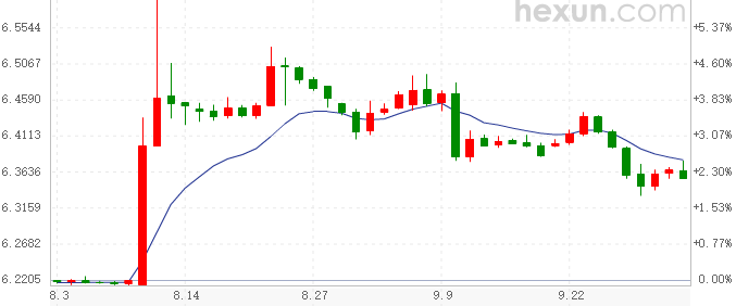 姚尧批:下面这张图是8月份以来的美元/离岸人民币(USDCNH)的走势图