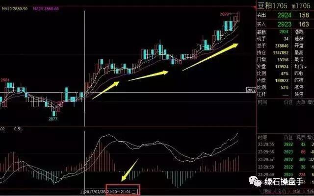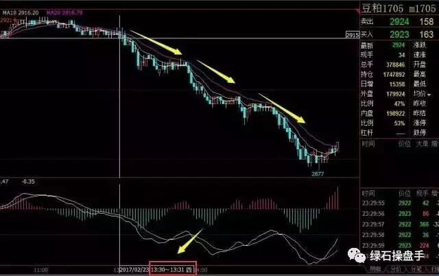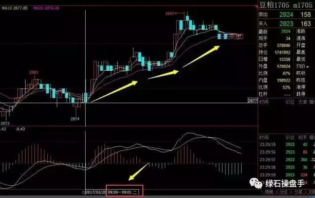 日内交易有很多种方法,有高频的,有低频的,有看分时图的,有看K线图的……今天给大家讲的是看1分钟k线,做日内单的方法。我以豆粕为例,先看三张图: