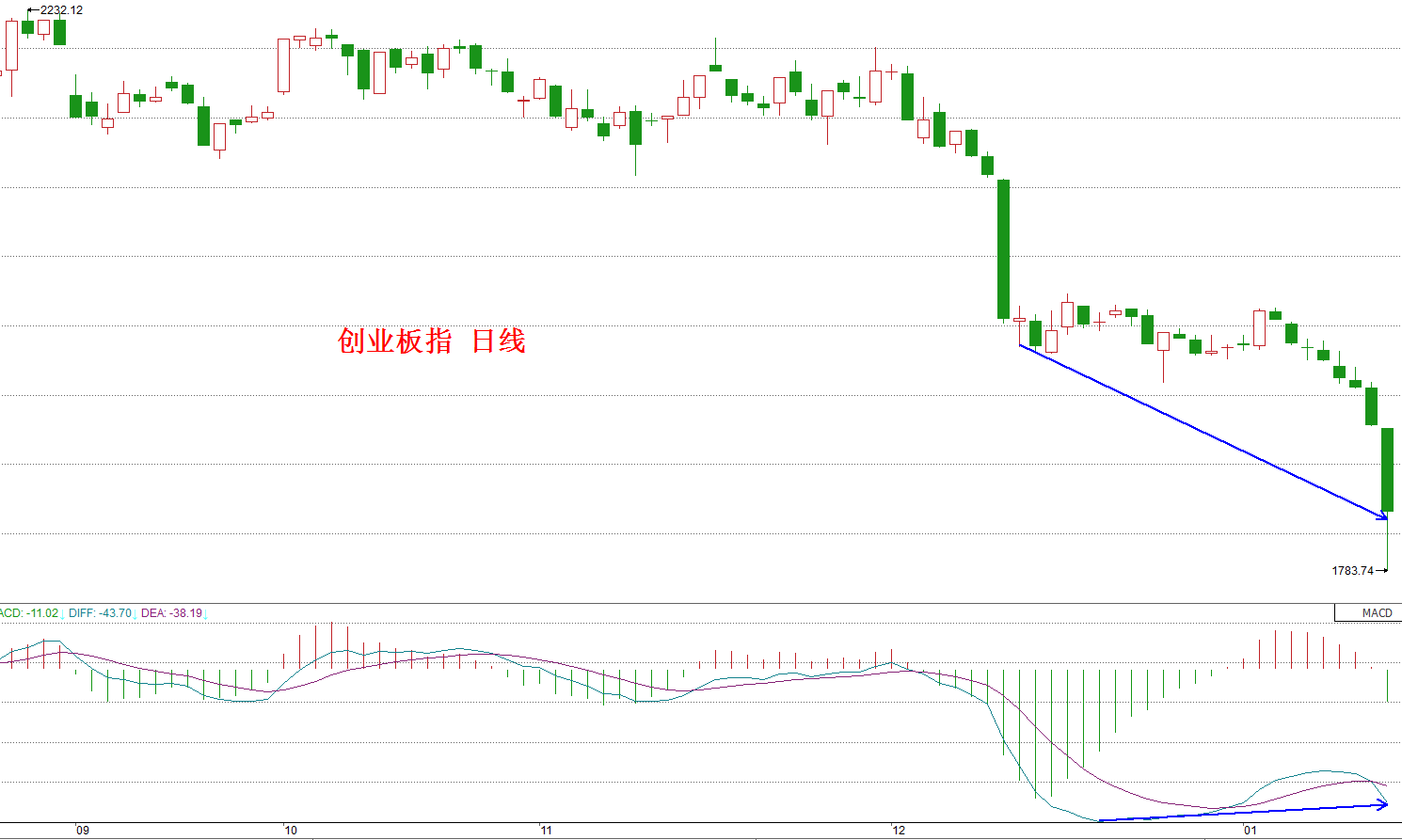 虽然相较主板而言,创业板指跌幅惨重而反弹较少,但从上图中可见其MACD指标也已出现了底背离,是以短期内理应还有反弹的动能。只是我们同样不建议读者抄底,除非你现在仓位非常非常轻,又或者你有坚定的长线心理准备。