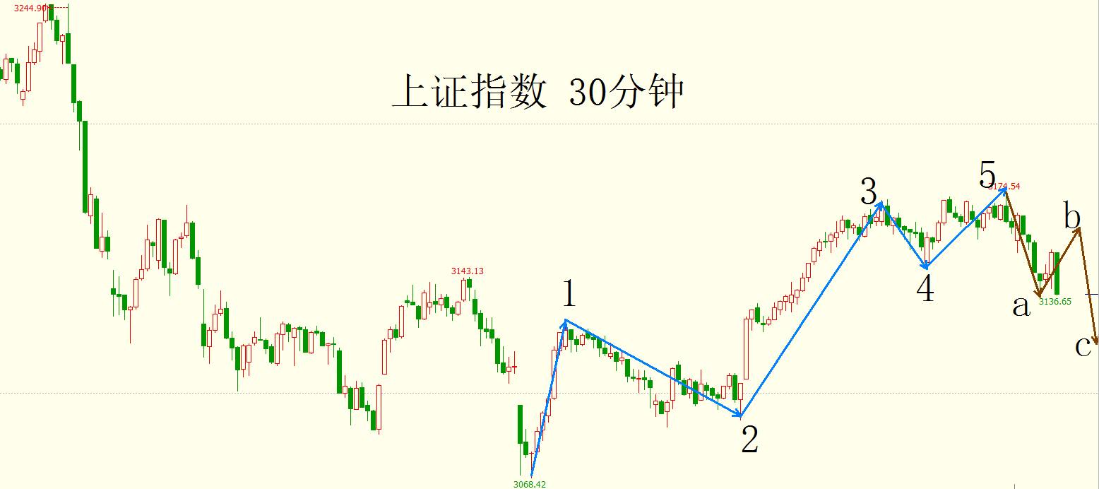 我们接下来计算上证指数30分钟线的波浪,如下图所示: