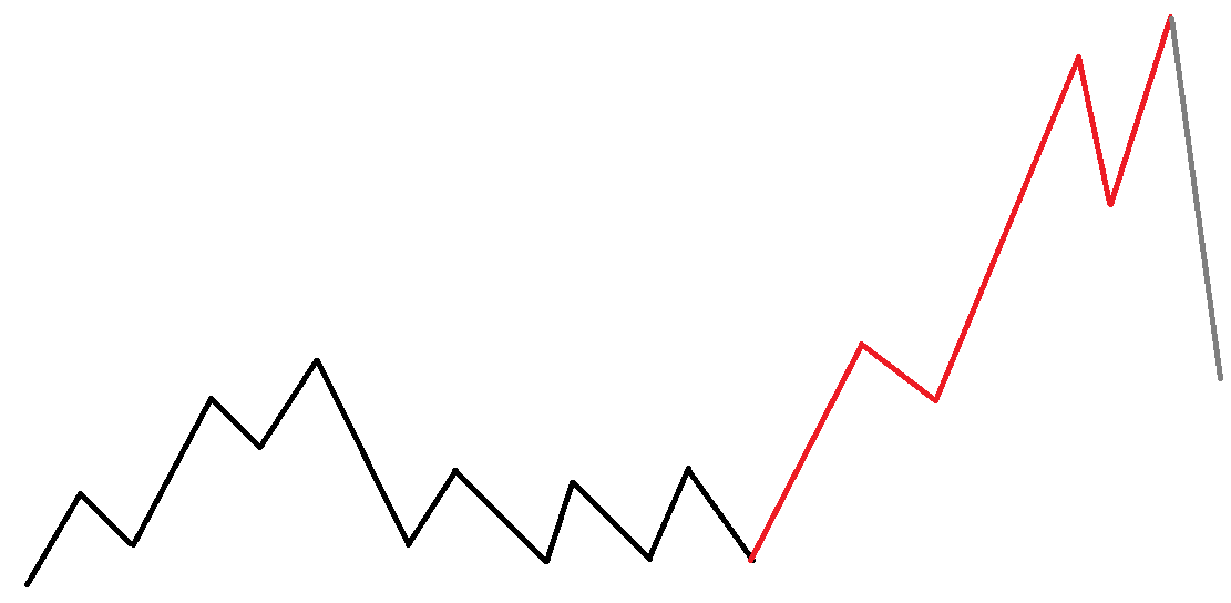 图中最右边的灰色线,是刘备在夷陵之战败于东吴陆逊之手,股价出现崩盘,这个我们就不谈了,我们只谈图中红色线这段。刘备的这轮牛市,完全是由诸葛亮下山所引发的,只是三顾茅庐的君臣际遇,不但刘备的敌人没有预料到,刘备自己事先也未能料到。然而,你能说刘备当年四处流浪时的底部盘整是没有价值的吗?好像也不能这么说吧。首先,如果不是刘备流浪到荆州,他不可能会到隆中拜访诸葛亮。其次,如果不是刘备这些年的所作所为,他也无法引起诸葛亮的兴趣。再次,三顾茅庐之时刘备46岁,而诸葛亮年仅26岁,如果不是经历了无数挫折的辛酸,怎么可能让一位46岁名声显赫的天下英雄,去三顾茅庐求教于26岁的年轻人呢?更何况,如果真要再早几年的话,以诸葛亮的年龄也不可能会有《隆中对》时的雄才大略。