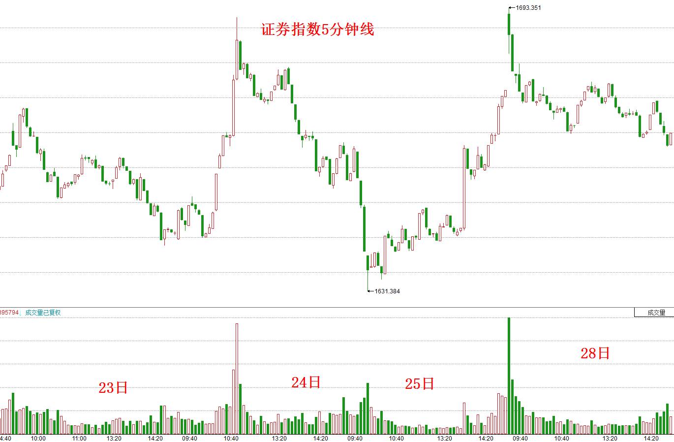 请看下面这张证券指数5分钟线图: