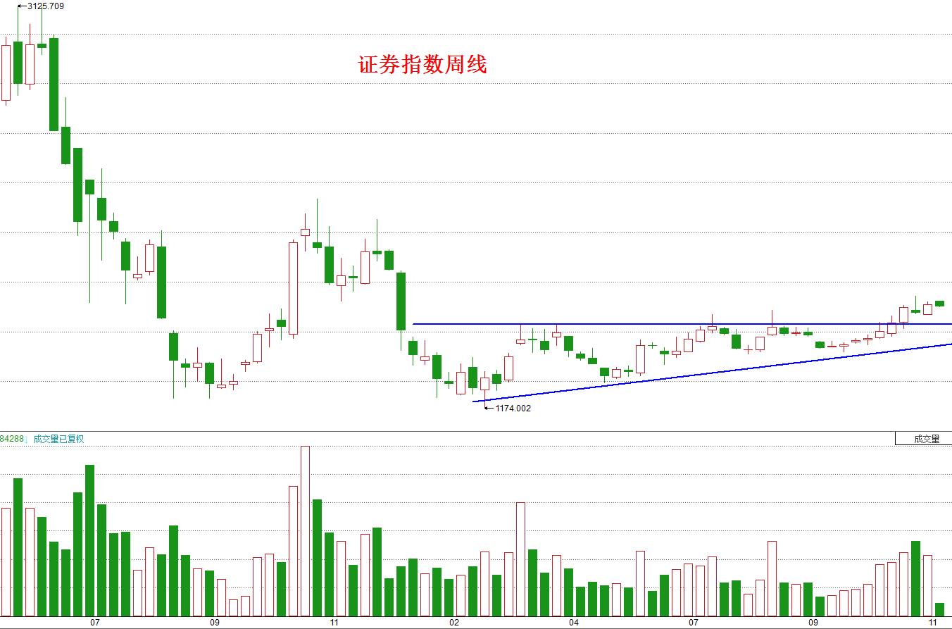再来看下面这张证券指数周线图: