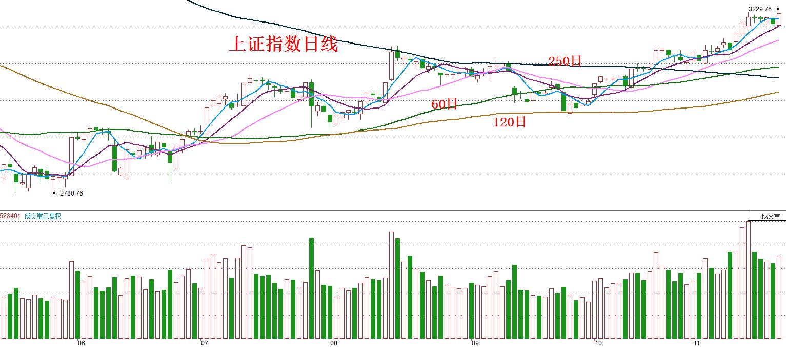今日上证指数盘中再次创出反弹新高,来到3229.76点。能创出新高固然是好事,但今天的成交量却是明显不足的,这对指数继续上行构成了隐忧。在11日和14日,上证指数连创新高时的成交量放大到了3400多亿元,之后成交量逐步回落2400亿元左右的水平。今天再创新高,成交量只略高于前两日,而远不如前一波的上涨,是以我们不得不对盘面采取谨慎态度。为此,姚尧建议短线投资者可逐步分批止盈以降低仓位,重新回到六七成为宜,至于长线投资者依然可以看好。