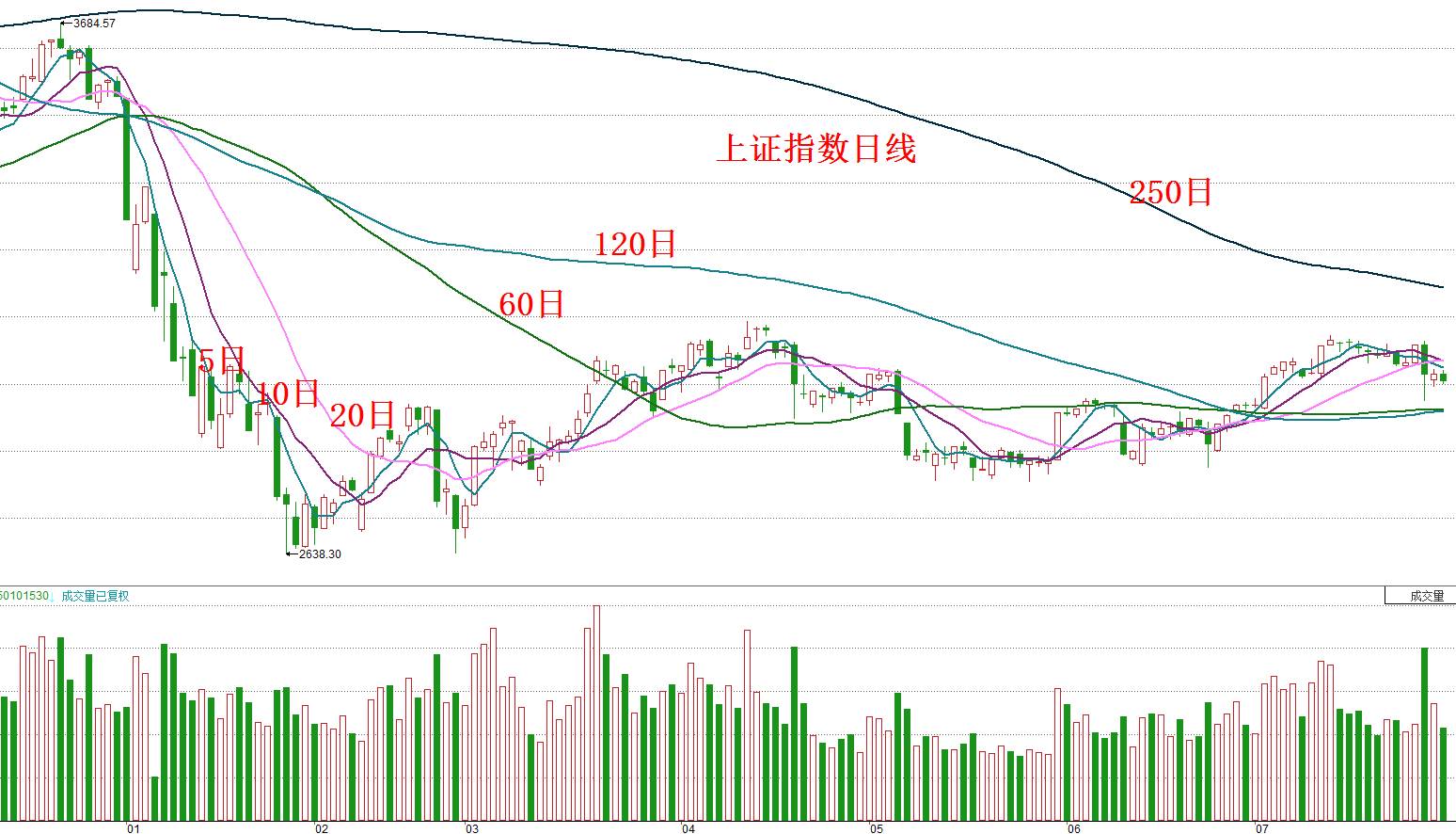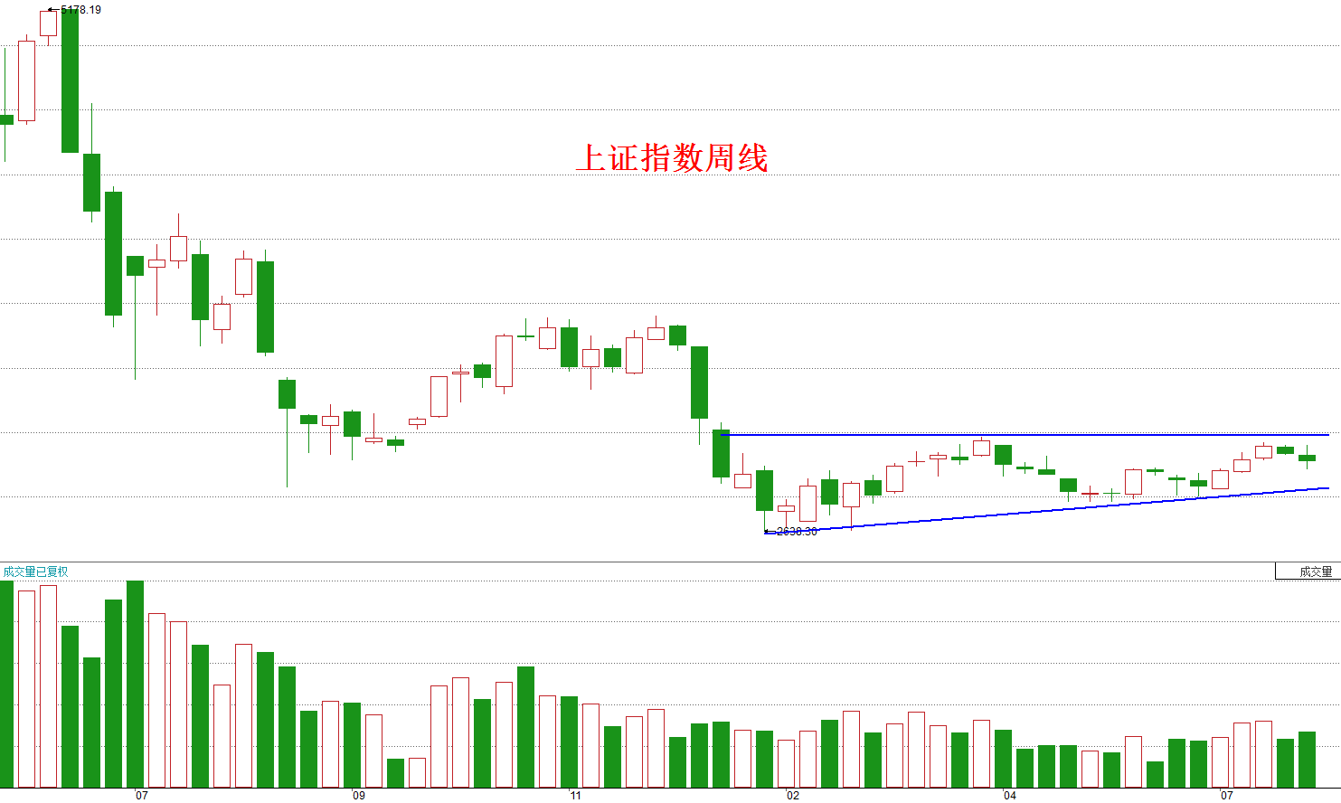 我们之前一直说上证指数大概率是要走三角形底部了。虽然许多投资者本周跌幅不小,但从上证指数的周线图上看,其实距离下边沿还有一段距离。在《7月29日股市前瞻》中,姚尧提到上证指数可能会在国庆节前后向上突破,距离现在还有九个星期。我先在这做个大胆猜想,上证指数极有可能用四个星期的时间缓步触碰到三角形的下边沿(彼时将大约在2900点附近),然后再用五个星期的时间震荡攀升到三角形的上边沿(3100点附近),然后再在国庆节后向上突破。