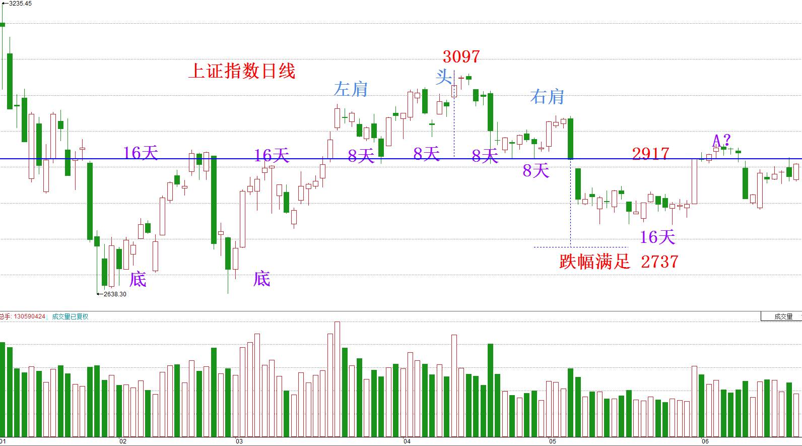 不知大家是否还记得,我在《6月16日股市前瞻》和《6月17日股市前瞻》中给大家讲解了什么叫作底部结构完整,并且列举了三个案例,分别是刚突破的案例B,已经突破大涨的案例F和尚未突破的案例Q。下面这张是案例Q当时的走势图: