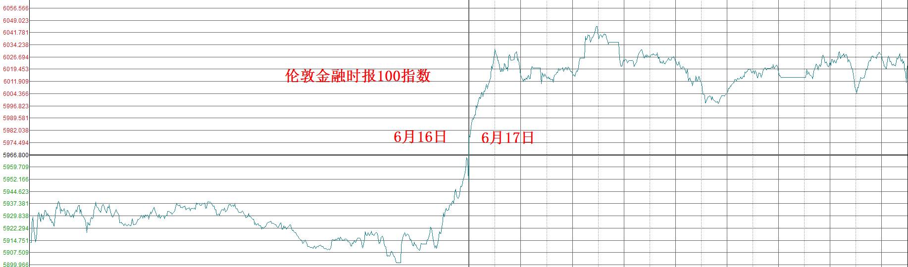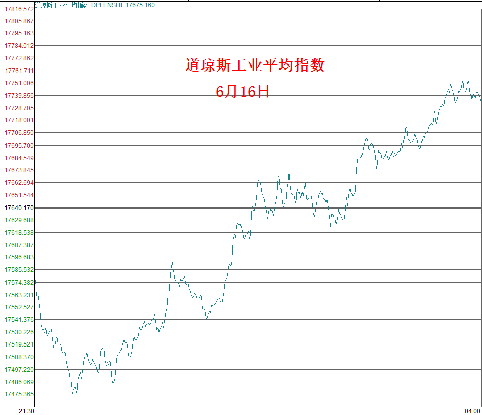 6月16日,英国“留欧派”工党女议员乔·考克斯在利兹附近的选区准备会见选民时遭到枪击和刺伤,送医院后不治身亡。事件发生是在当地时间周四下午13:00左右,亦即北京时间20:00点。事件发生后不久,欧美股市全线出现深V,从下跌开始直线拉升,下面这张道指周四的走势图: