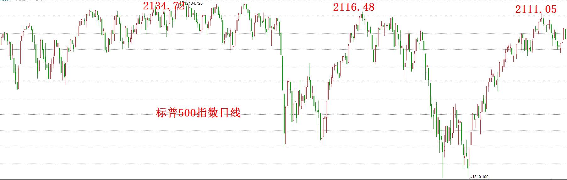 可以看到,标普500指数的历史最高价是2134.72点,时间是在去年的5月20日,距离现在刚好一年左右时间。八月暴跌之后再度拉升到2116.48点,时间是在去年的11月3日,距离现在刚好半年左右。今年1月暴跌之后又在4月20日再次被拉高到2111.05点。今天的收盘价是在2064.46点。也就是说,仅就指数而言,美股现在和半年前的点位是差不多的,都在距离历史最高位不远的地方。